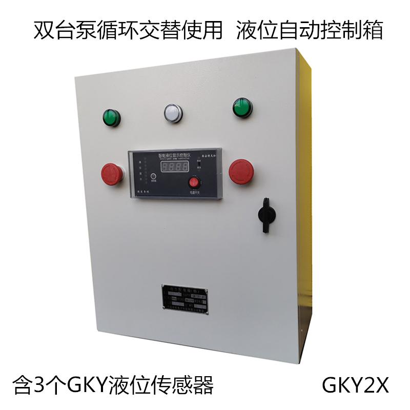 GKYX1A/1为单台泵直接启动液位自动控制箱,A为水泵功率等级。该控制箱设置了手动自动转换开关,将转换开关打到手动,按下起动按钮时启动,按下停止按钮时停止。将转换开关打到自动时,根据液位高低自动开关水泵。仪表可以设为排水型或供水型,排水型高位启泵低位停泵,供水型低位启泵,高位停泵。该控制箱可以做成双层门防雨不锈钢控制箱,可以配备通讯接口。