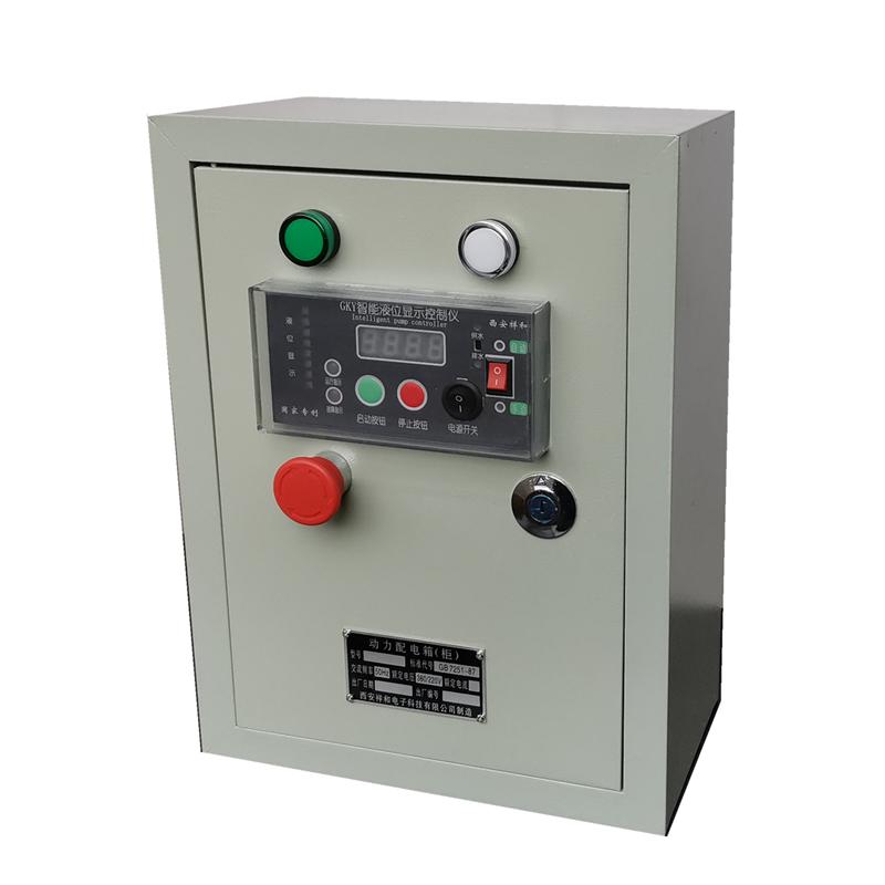 GKY1X控制箱通过仪表实现手动自动控制。将仪表上的转换开关打到手动,按下仪表上的绿色按钮水泵启动;按下红色按钮水泵停止工作。将仪表上的转换开关打到自动,则水泵根据水位高低自动开关水泵。仪表可以进行供水排水设置,供水型则低位启动高位停止;排水型高位启动低位停止。该控制箱设置了一个强制启动按钮,在仪表出故障时使用。按下强制启动按钮则强制启动水泵,旋转弹出强制启动按钮,则水泵停止工作。可以做成双层门防雨不锈钢控制箱,可以配备通讯接口。